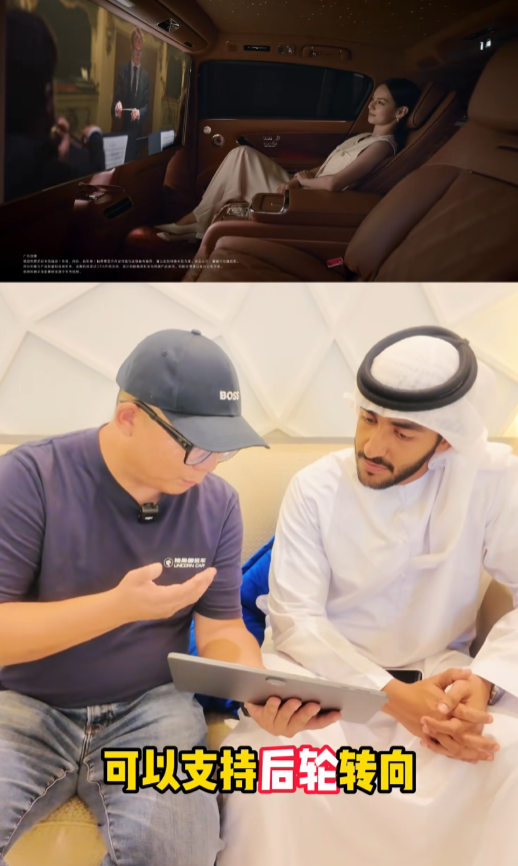 期间,博主向阿联酋拉斯海马王子展示了尊界S800的黑科技功能,包括维也纳音乐厅音效、后轮转向、后排一键隐私模式、手势召唤等,中东王子本人是秒种草。
